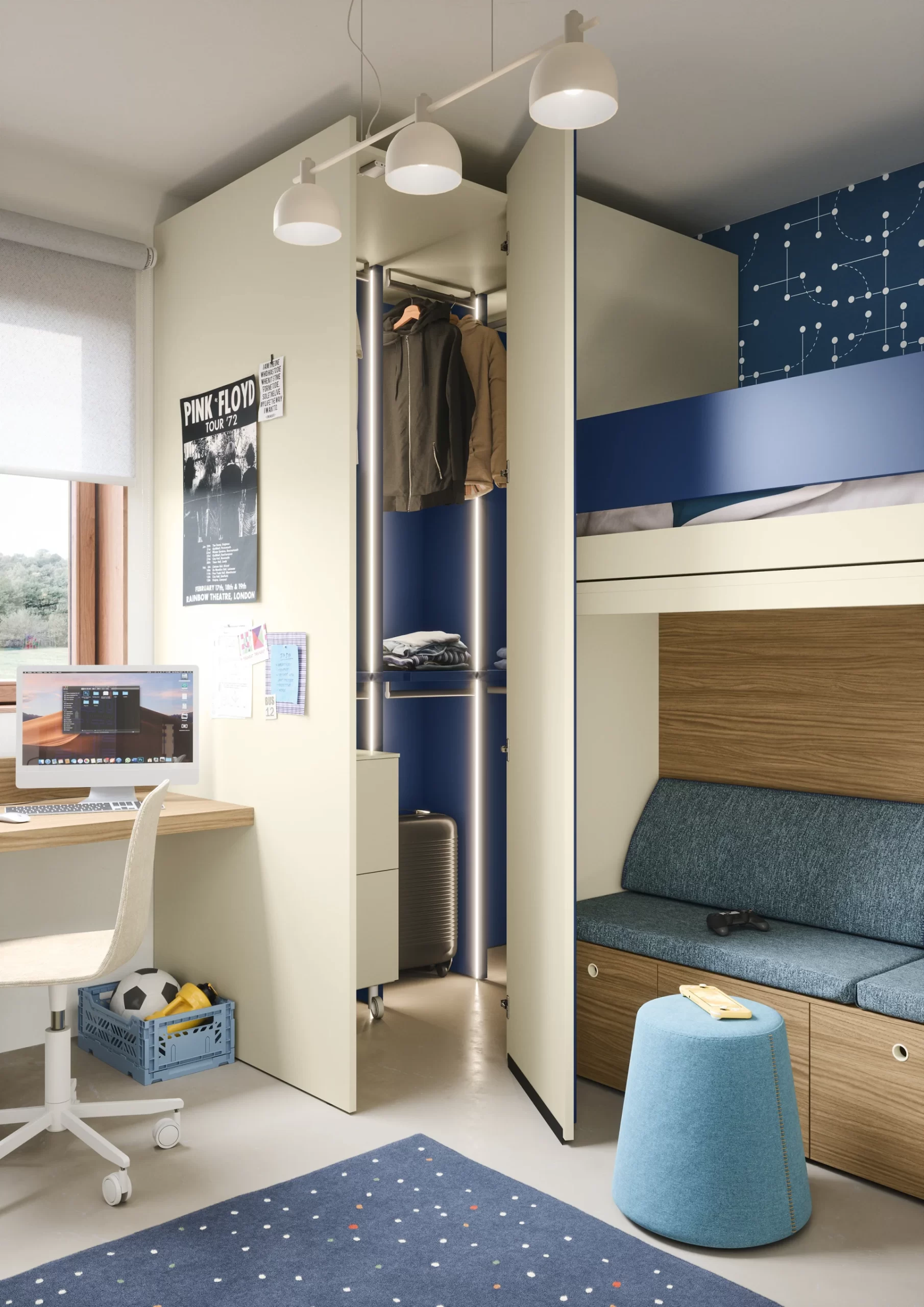 Dalle scrivanie integrate alle cabine armadio, ogni elemento contribuisce a costruire un ambiente completo e coerente.