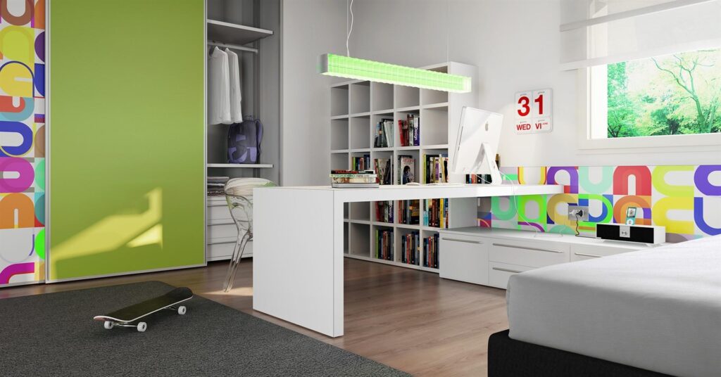 La camera di un adolescente richiederà, invece, un design e un’organizzazione degli spazi diversi, con elementi di arredo adatti alle necessità di un teenager. Per esempio, una scrivania o una postazione per il gaming (console, joypad, sedia girevole, schermo e tanto altro ancora).