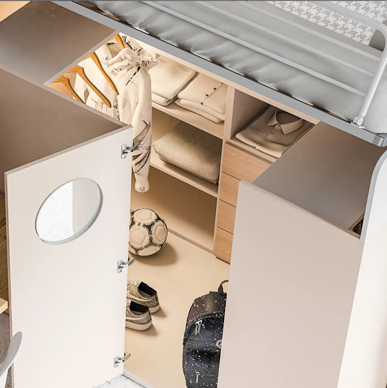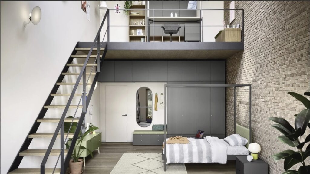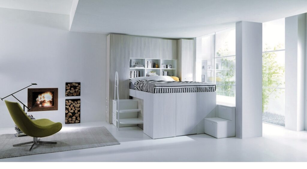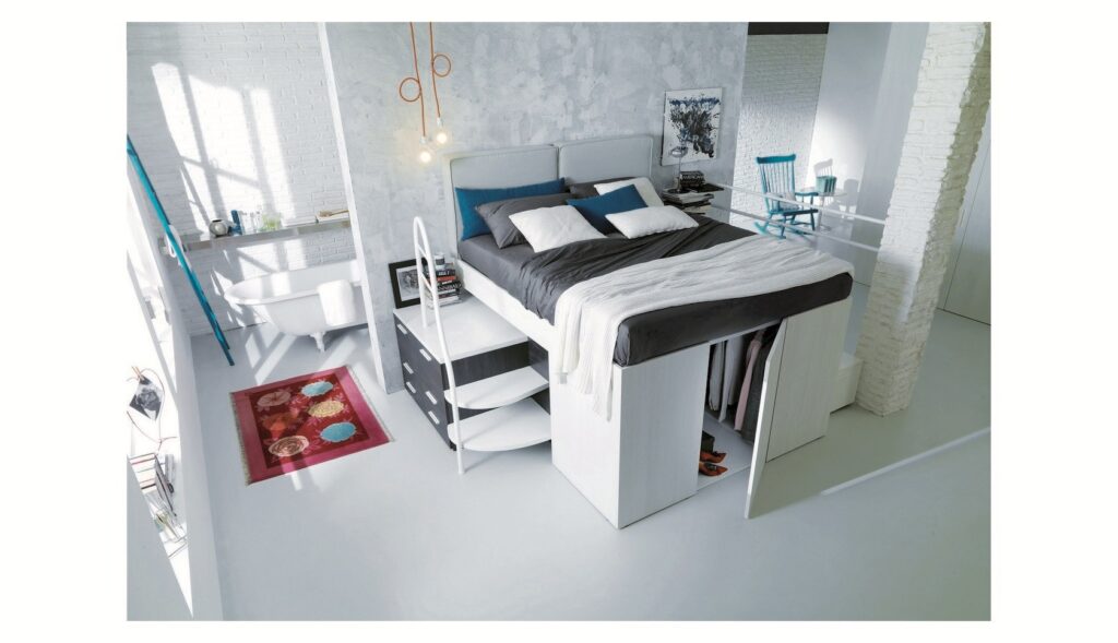 Oltre alle tradizionali soluzioni di letti a castello, letti a ponte e letti a terra, particolarmente interessante e funzionale,  è il letto Container di Dielle. Una vera e propria innovazione tra i letti a soppalco. Il letto container è, infatti: