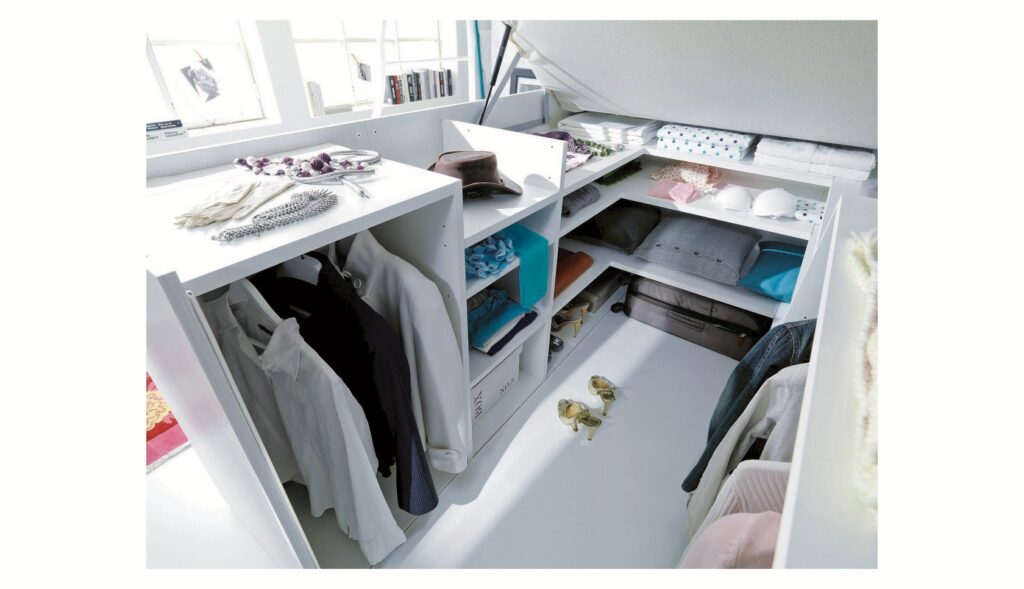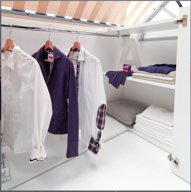 • Super accessoriato: sotto il piano letto, la cabina può essere accessoriata con ripiani ed elementi appendiabito;